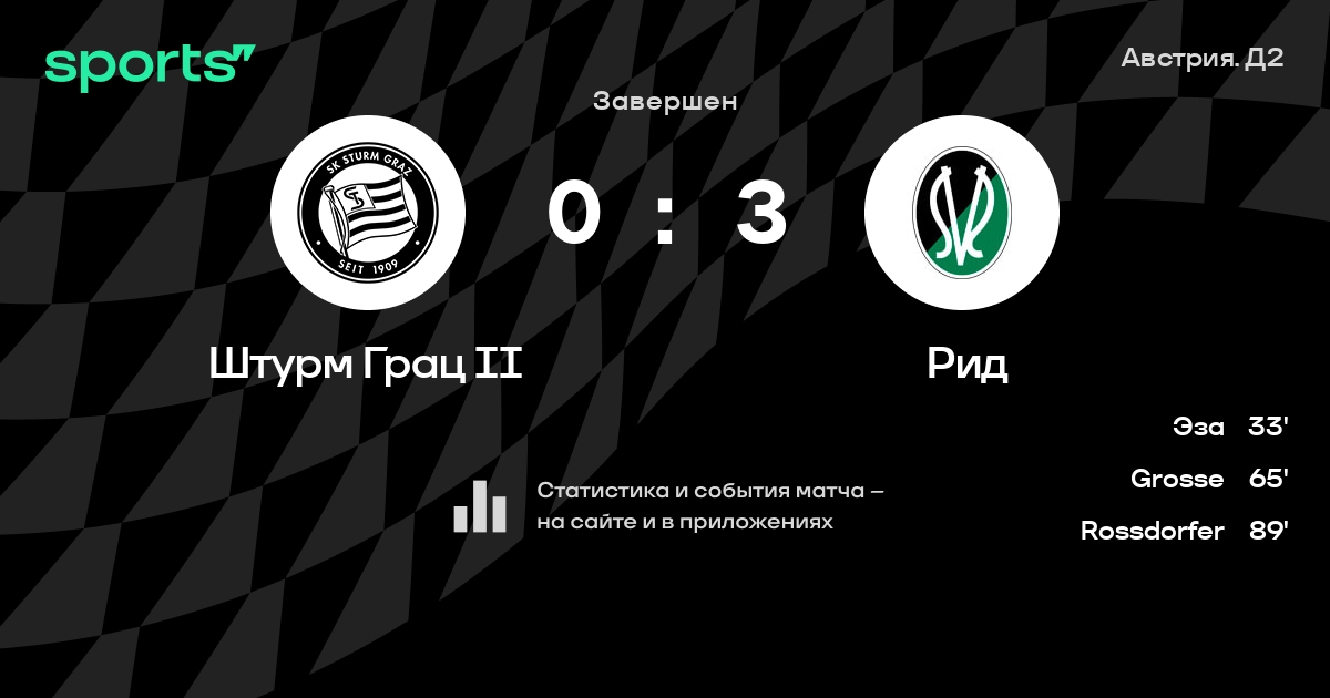 Результат прошлой игры в турнире «Вторая бундеслига»: Санкт-Пельтен – Штурм Грац II 0:2. После 12 туров Штурм Грац II набирает 17 очков и занимает 9 место в турнире. Лучший бомбардир команды – P. Kiedl: он забил 4 в 12 матчах. Штурм Грац II не проигрывает в 8 последних матчах в рамках турнира «Вторая бундеслига». В 6 последних матчах в турнире «Вторая бундеслига» Штурм Грац II обязательно забивает. В последних 5 играх Штурм Грац II забивает 15 голов. В последних 5 играх Штурм Грац II пропускает 7 голов.