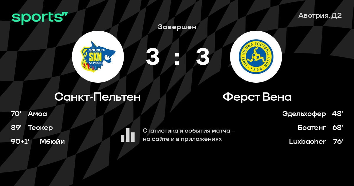Санкт-Пельтен – Ферст Вена: Санкт-Пельтен забивает в 13 последних матчах против этого соперника