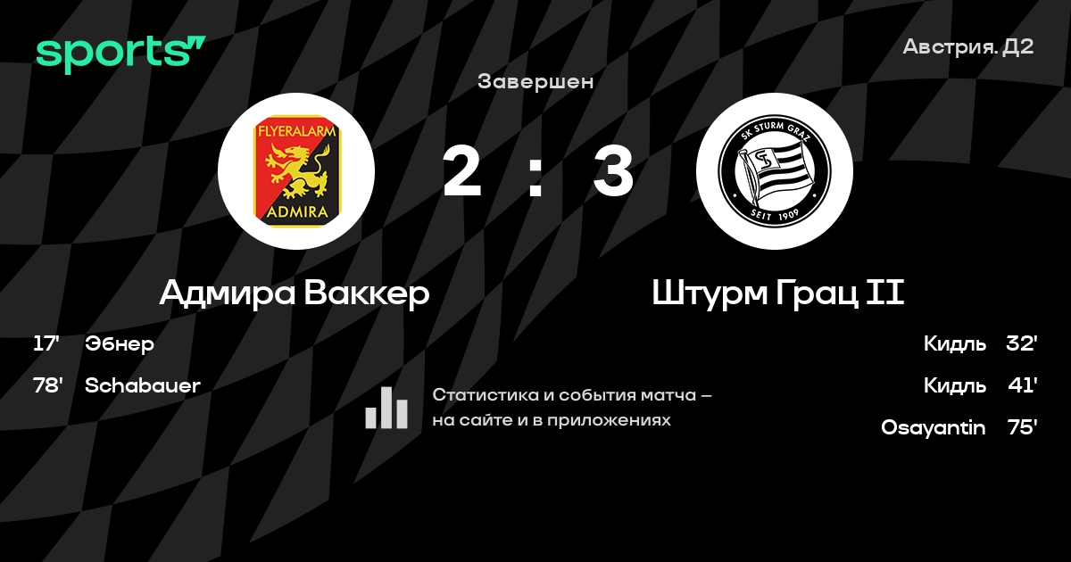 Адмира Ваккер – Штурм Грац II: Штурм Грац II забивает в 5 последних матчах против этого соперника