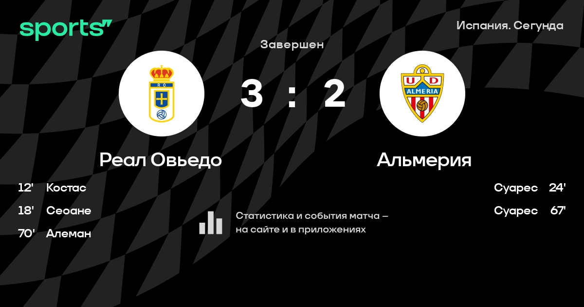 Результат прошлой игры в турнире «Сегунда»: Леванте – Реал Овьедо 0:0. После 8 туров Реал Овьедо набирает 12 очков и занимает 11 место в турнире. Лучший бомбардир команды – Alemão: он забил 2 в 8 матчах. Реал Овьедо не проигрывает в 4 последних матчах в рамках турнира «Сегунда». В последних 5 играх Реал Овьедо забивает 4 голов. В последних 5 играх Реал Овьедо пропускает 4 голов.