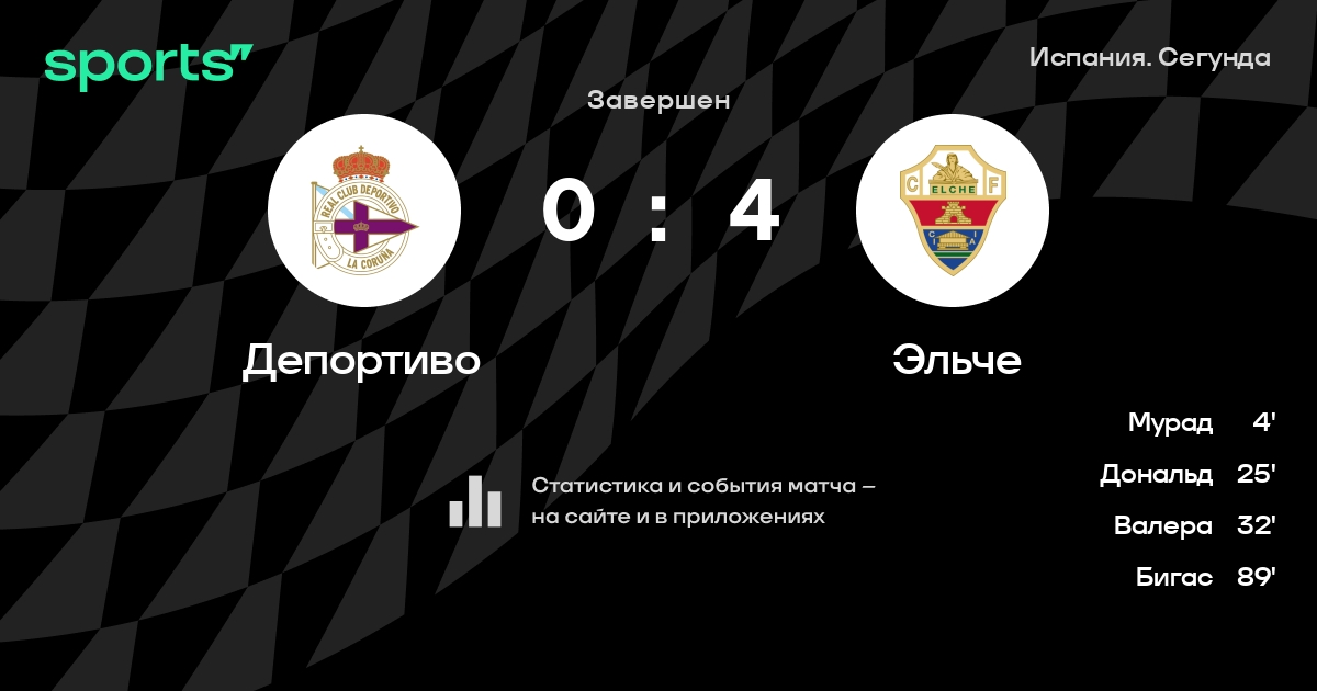 Результат прошлой игры в турнире «Сегунда»: Сарагоса – Депортиво 1:0. После 41 туров Депортиво набирает 53 очков и занимает 15 место в турнире. Лучший бомбардир команды – Еремай: он забил 15 в 38 матчах. Депортиво проигрывает в 3 последних матчах в рамках турнира «Сегунда». Эльче имеет в активе больше всех побед в турнире – 21. Депортиво пропускает в 5 последних матчах в турнире «Сегунда». В последних 5 играх Депортиво забивает 9 голов. В последних 5 играх Депортиво пропускает 9 голов.