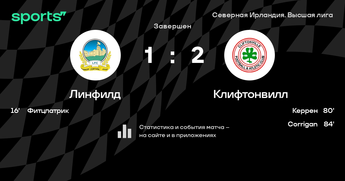 Результат прошлой игры в турнире «Премьер-лига»: Loughgall FC – Линфилд 1:3. После 12 туров Линфилд набирает 26 очков и занимает 1 место в турнире. Лучший бомбардир команды – Джоэл Купер: он забил 7 в 14 матчах. Линфилд имеет в активе больше всех побед в турнире – 8. Линфилд имеет лучшую разницу мячей в турнире – 15. В 5 последних матчах в турнире «Премьер-лига» Линфилд обязательно забивает. Линфилд пропускает в 3 последних матчах в турнире «Премьер-лига». Линфилд больше всех забивает в турнире – 26 в 12. В последних 5 играх Линфилд забивает 13 голов. В последних 5 играх Линфилд пропускает 6 голов.