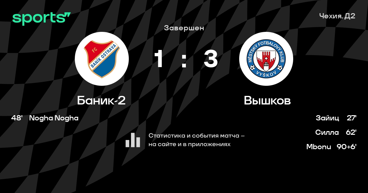 Baník Ostrava II пропускает в 4 последних матчах