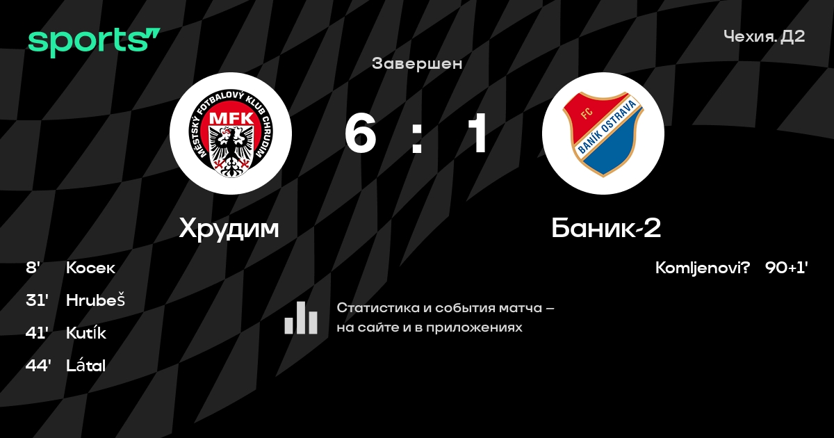 В последних 5 играх Хрудим забивает в среднем 2.20 гола за игру