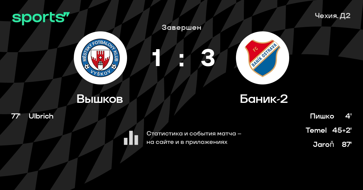 | 3 | Вышков | 30 | 12 | 10 | 8 | 33 | 24 | +9 | 46 | ||