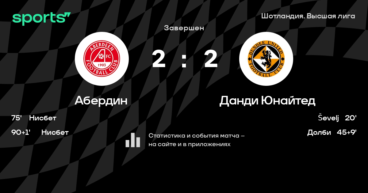 Абердин – Данди Юнайтед: Абердин не проигрывает в 8 из 10 последних матчей против этого соперника дома