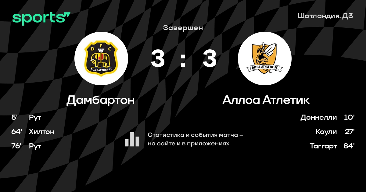 Дамбартон – Аллоа Атлетик: Дамбартон не проигрывает в 10 из 12 последних матчей против этого соперника в турнире «Лига 1»
