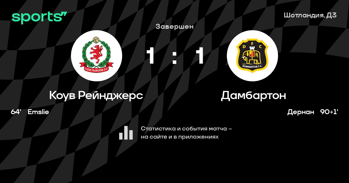 Коув Рейнджерс – Дамбартон: Коув Рейнджерс не проигрывает в 5 последних матчах против этого соперника