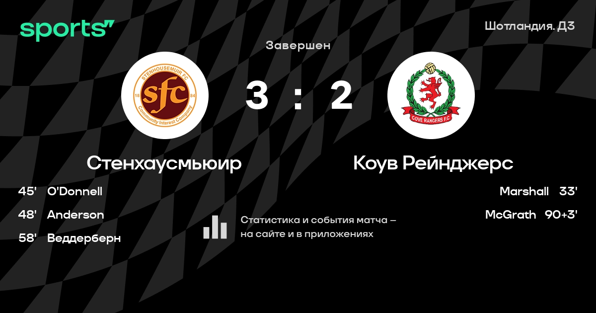 Трансляция Стенхаусмьюир - Коув Рейнджерс