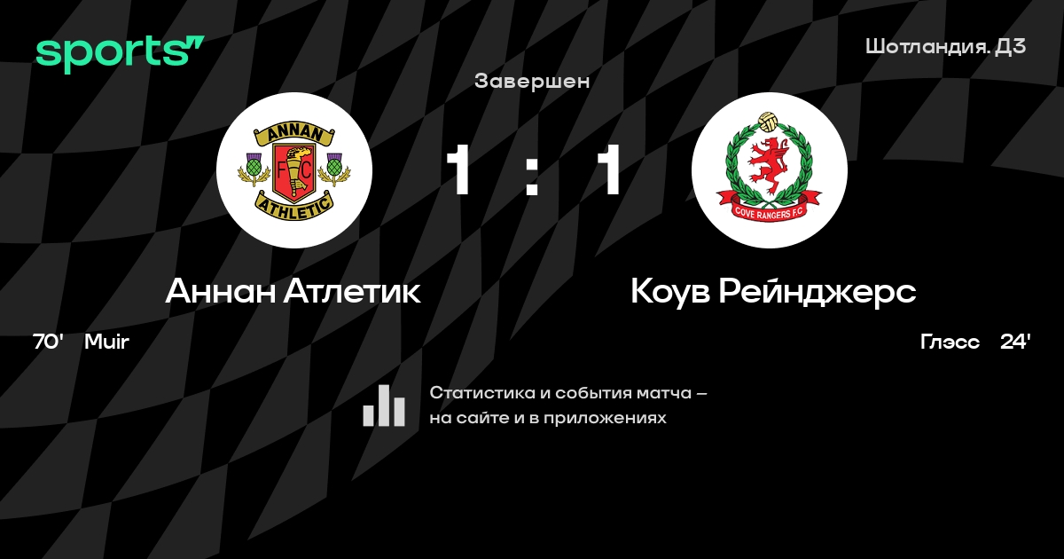 Трансляция Аннан Атлетик - Коув Рейнджерс