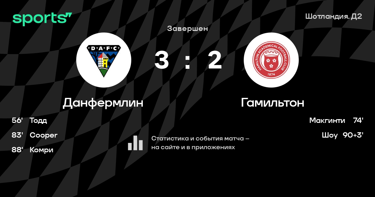 Результат прошлой игры в турнире «Чемпионшип»: Партик – Гамильтон 5:1. После 14 туров Гамильтон набирает 15 очков и занимает 7 место в турнире. Лучший бомбардир команды – Оливер Шоу: он забил 11 в 20 матчах. В 5 последних матчах в турнире «Чемпионшип» Гамильтон обязательно забивает. В последних 5 играх Гамильтон забивает 11 голов. В последних 5 играх Гамильтон пропускает 9 голов.