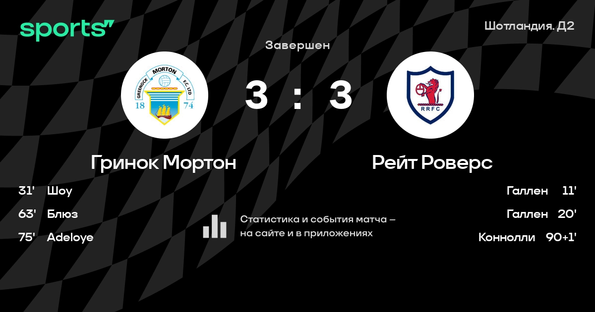 Гринок Мортон – Рейт Роверс: Гринок Мортон не проигрывает в 5 из 7 последних матчей против этого соперника дома