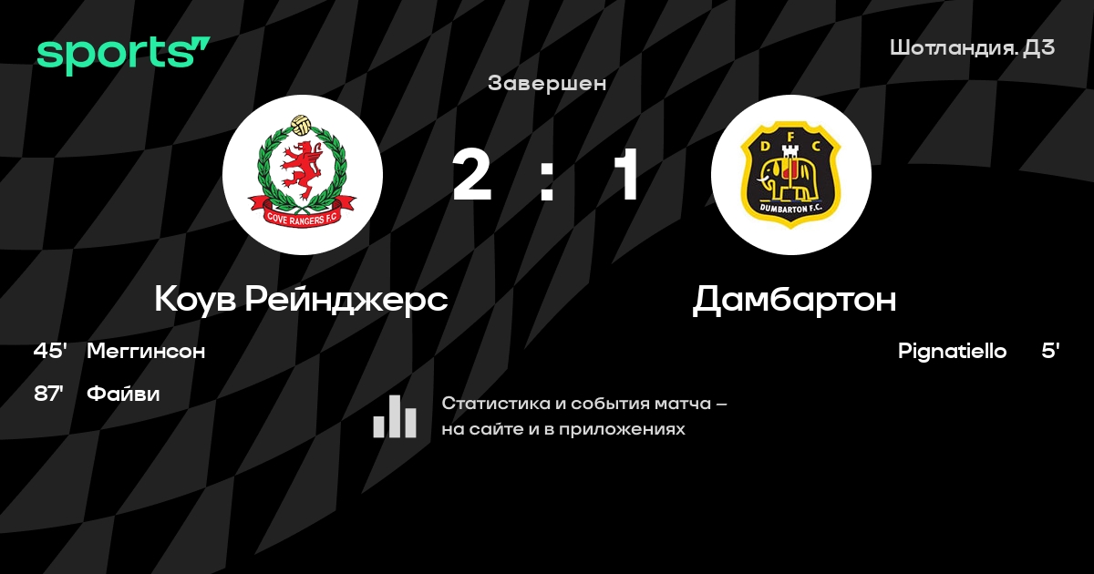Коув Рейнджерс – Дамбартон: Коув Рейнджерс не проигрывает в 7 последних матчах против этого соперника