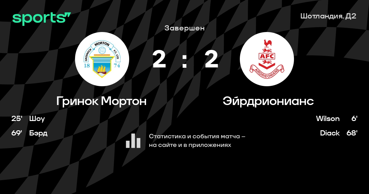 Гринок Мортон – Эйрдрионианс: Гринок Мортон не проигрывает в 8 из 9 последних матчей против этого соперника дома в турнире «Чемпионшип»