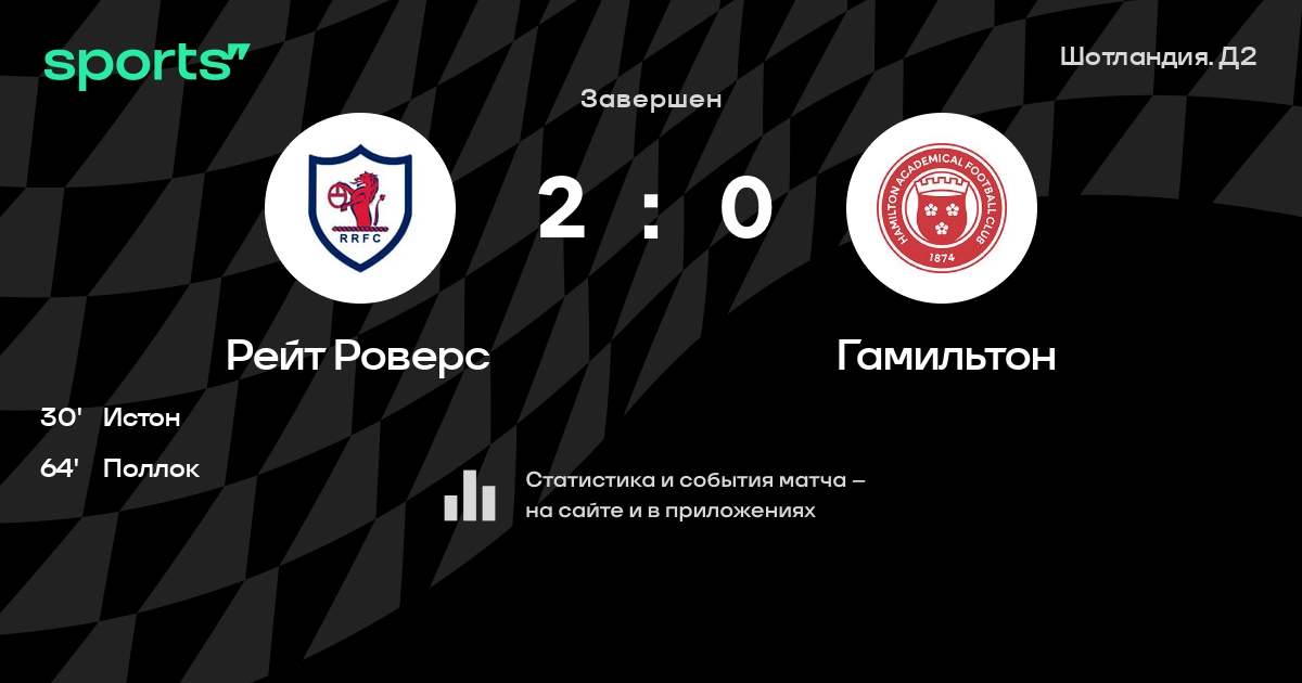 Рейт Роверс – Гамильтон: Рейт Роверс забивает в 5 последних матчах против этого соперника
