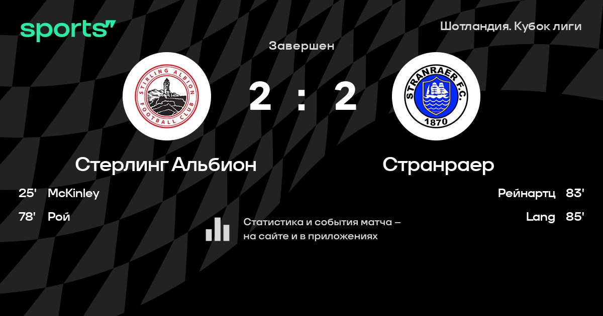 Стерлинг Альбион – Странраер: Стерлинг Альбион забивает в 9 последних матчах против этого соперника