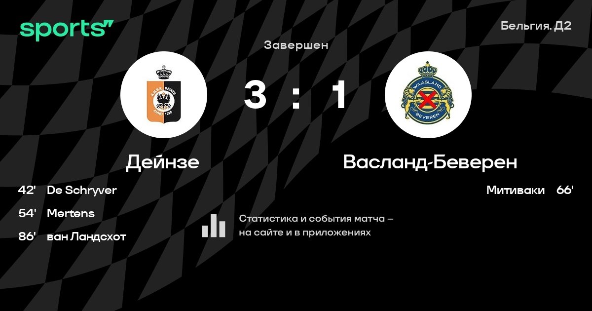 Результат прошлой игры в турнире «Первый дивизион»: РВД Моленбек – Дейнзе 3:2. После 9 туров Дейнзе набирает 14 очков и занимает 6 место в турнире. Лучший бомбардир команды – Guillaume De Schryver: он забил 3 в 9 матчах. В 3 последних матчах в турнире «Первый дивизион» Дейнзе обязательно забивает. В последних 5 играх Дейнзе забивает 5 голов. В последних 5 играх Дейнзе пропускает 12 голов.