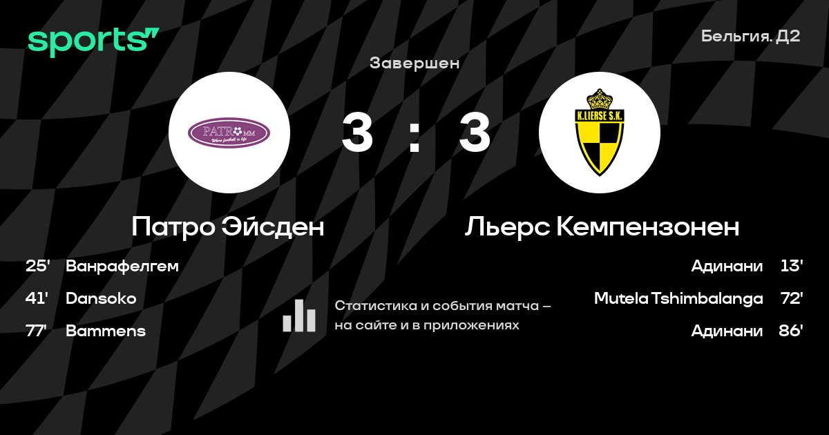 Трансляция Патро Эйсден - Льерс Кемпензонен