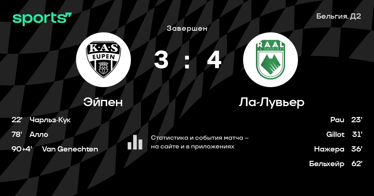 Пеано - Gillot, Djibril Lamego, Maisonneuve, Camara, Гобитака - Бонджованни, Gueulette, Pau - Нажера, БельхейрЗапасные: Валкенарс, Corneillie, Hoedaert, Loiseaux, Diallo, Maes, Эйонго, Фонтен, Guindo