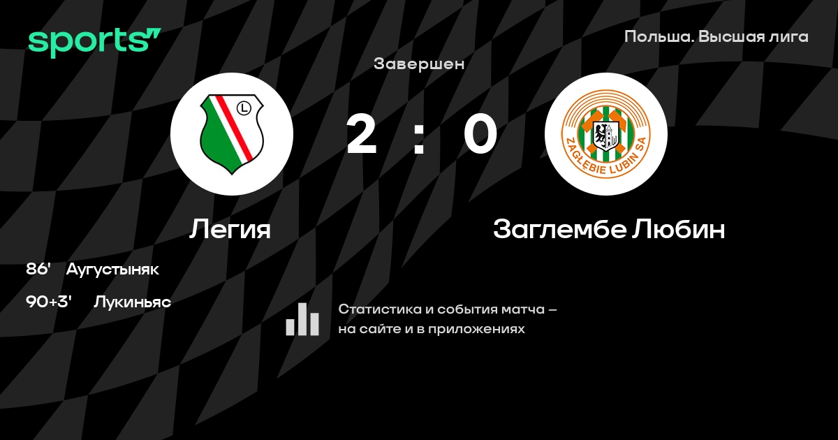 Легия – Заглембе Любин: Легия побеждает в 8 последних очных матчах