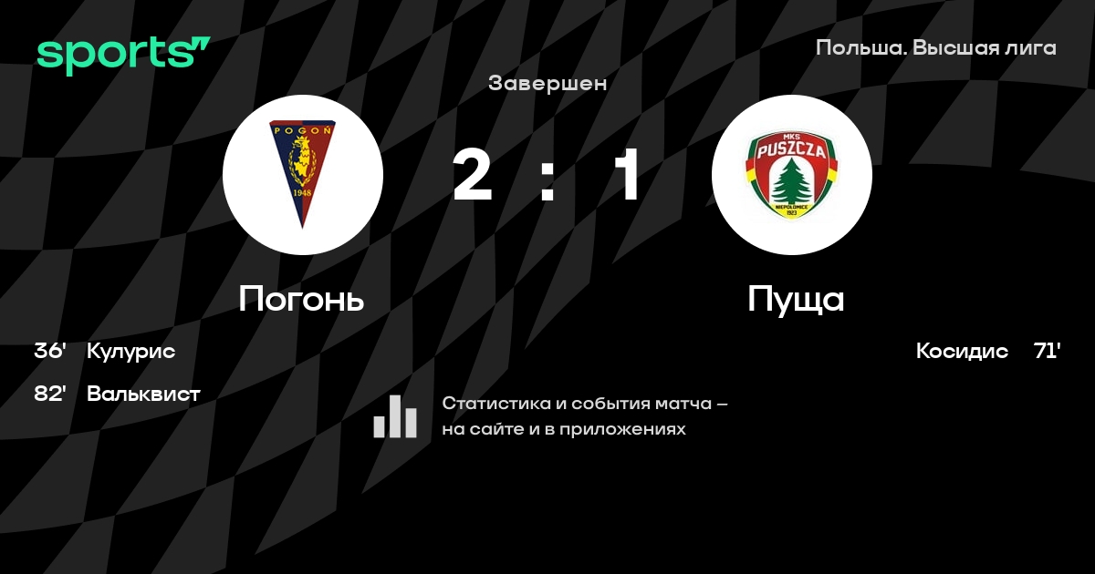 Результат прошлой игры в турнире «Высшая лига»: Радомяк – Пуща 2:0. После 12 туров Пуща набирает 8 очков и занимает 18 место в турнире. Лучший бомбардир команды – Михалис Косидис: он забил 4 в 12 матчах. Пуща проигрывает в 4 последних матчах в рамках турнира «Высшая лига». В 3 последних матчах в турнире «Высшая лига» Пуща обязательно забивает. Пуща пропускает в 5 последних матчах в турнире «Высшая лига». В последних 5 играх Пуща забивает 2 голов. В последних 5 играх Пуща пропускает 13 голов.