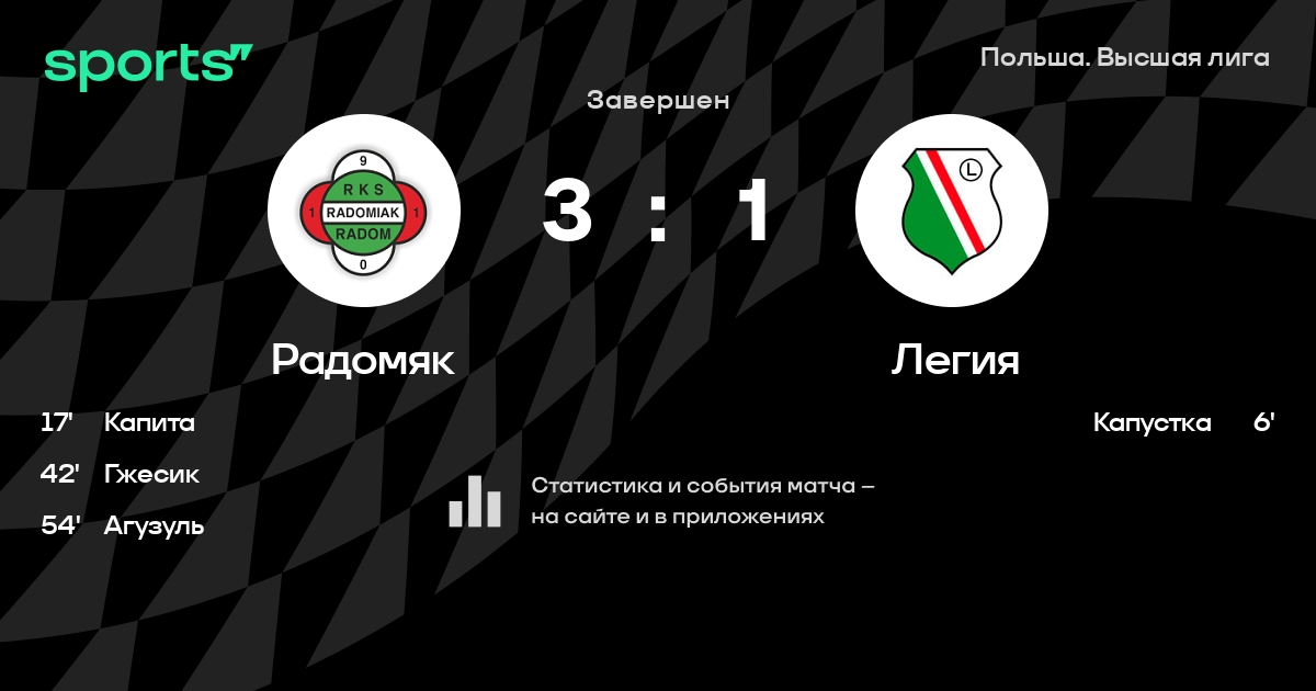 Радомяк – Легия: Легия не проигрывает в 5 из 7 последних матчей против этого соперника