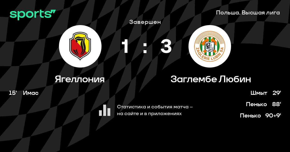 Ягеллония – Заглембе Любин: Ягеллония побеждает в 3 последних очных матчах