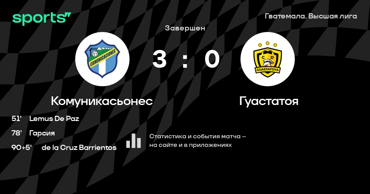 Результат прошлой игры в турнире «Национальная лига»: Малакатеко – Комуникасьонес 2:0. Лучший бомбардир команды – E. Lemus: он забил 4 в 7 матчах. Комуникасьонес не может выиграть в 6 последних матчах в рамках турнира «Национальная лига». В 3 последних матчах в турнире «Национальная лига» Комуникасьонес обязательно забивает. В последних 5 играх Комуникасьонес забивает 2 голов. В последних 5 играх Комуникасьонес пропускает 10 голов.