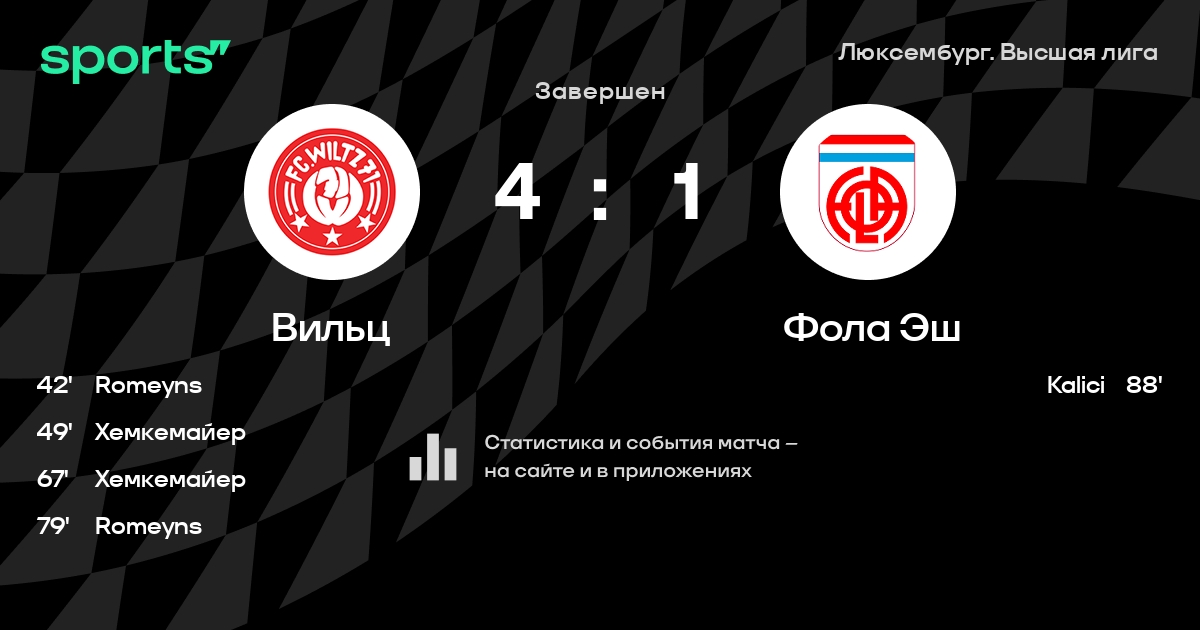| 4 | Расинг Люксембург | 30 | 17 | 6 | 7 | 50 | 22 | +28 | 57 | ||