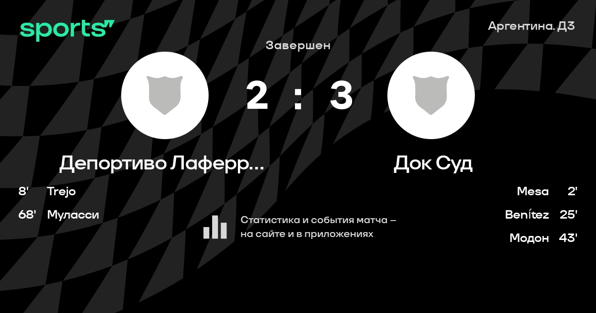 Депортиво Лаферрере – Док Суд: Док Суд не проигрывает в 5 из 7 последних матчей против этого соперника в гостях