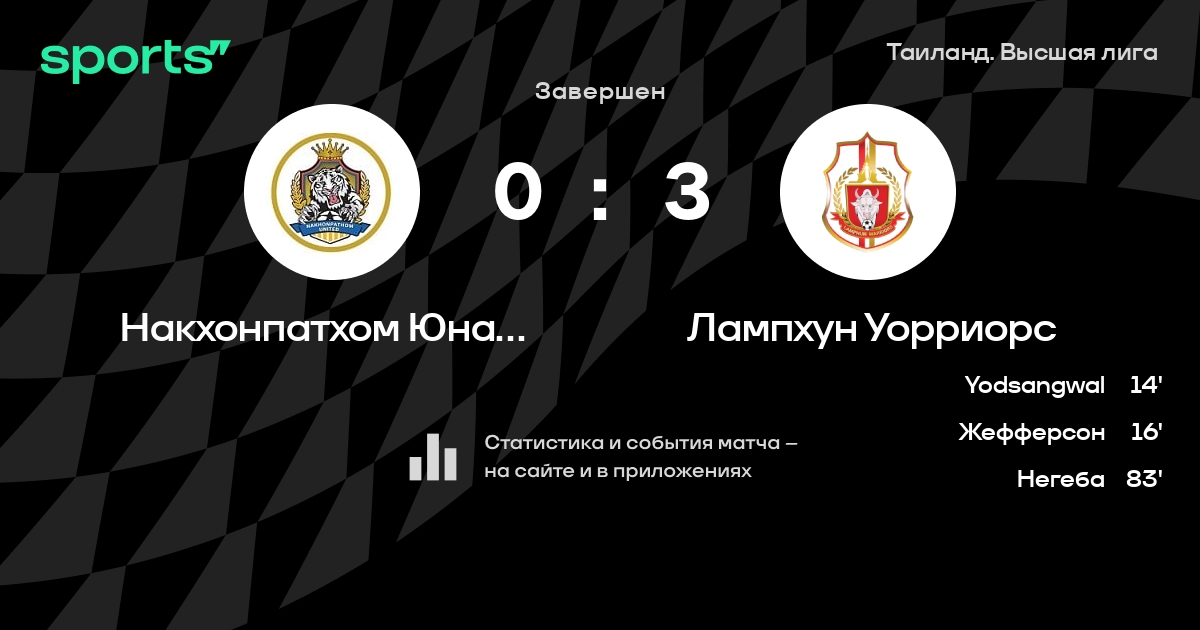 Результат прошлой игры в турнире «Премьер-лига»: Районг – Накхонпатхом Юнайтед 2:2. После 13 туров Накхонпатхом Юнайтед набирает 6 очков и занимает 16 место в турнире. Лучший бомбардир команды – Valdo: он забил 4 в 13 матчах. Накхонпатхом Юнайтед не может выиграть в 12 последних матчах в рамках турнира «Премьер-лига». В 5 последних матчах в турнире «Премьер-лига» Накхонпатхом Юнайтед обязательно забивает. Накхонпатхом Юнайтед пропускает в 7 последних матчах в турнире «Премьер-лига». В последних 5 играх Накхонпатхом Юнайтед забивает 6 голов. В последних 5 играх Накхонпатхом Юнайтед пропускает 11 голов.
