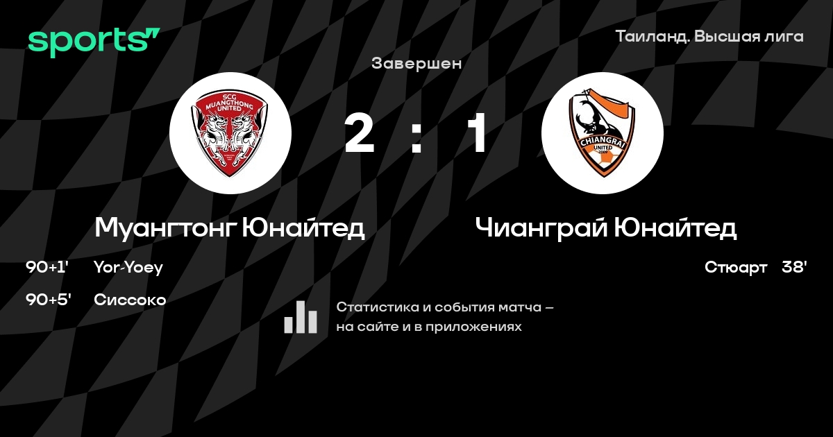 Результат прошлой игры в турнире «Премьер-лига»: Чианграй Юнайтед – Накхонпатхом Юнайтед 3:0. После 20 туров Чианграй Юнайтед набирает 23 очков и занимает 11 место в турнире. Лучший бомбардир команды – Ситтичок Канну: он забил 5 в 18 матчах. В последних 5 играх Чианграй Юнайтед забивает 5 голов. В последних 5 играх Чианграй Юнайтед пропускает 10 голов.