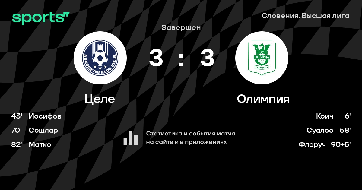 Целе – Олимпия: Олимпия не проигрывает в 5 из 7 последних матчей против этого соперника в турнире «Высшая лига»