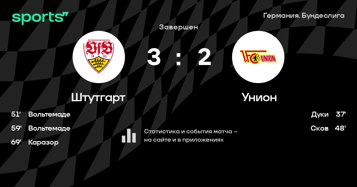 Результат прошлой игры в турнире «Бундеслига»: Вердер – Штутгарт 2:2. После 12 туров Штутгарт набирает 17 очков и занимает 9 место в турнире. Лучший бомбардир команды – Эрмедин Демирович: он забил 9 в 21 матчах. В 3 последних матчах в турнире «Бундеслига» Штутгарт обязательно забивает. В последних 5 играх Штутгарт забивает 10 голов. В последних 5 играх Штутгарт пропускает 10 голов.