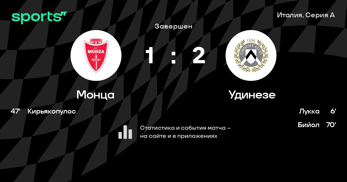 Чемпионат Италии. «Удинезе» победил «Монцу» в гостях