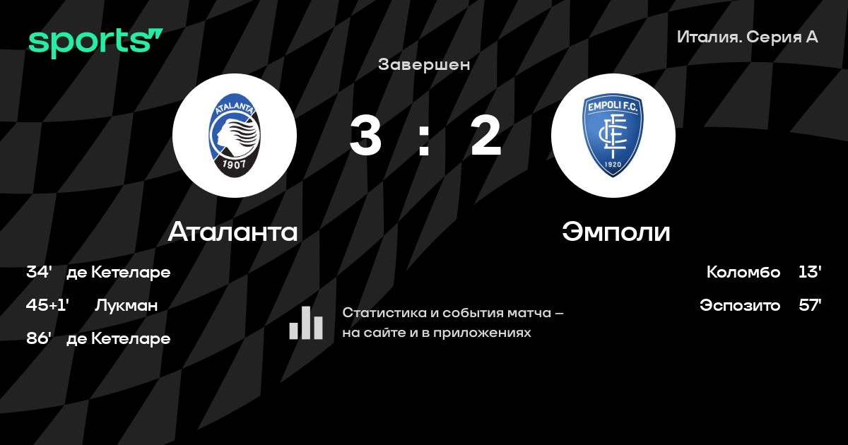 Карнезекки - Колашинац, Джимшити, Коссуну - Дзаппакоста, Лукман, де Кетеларе, Эдерсон, Пашалич, Белланова - РетегиЗапасные: Руй Патрисиу, Росси, Толои, Хин, Годфри, Руджери, Палестра, Сулемана, Куадрадо, Дзаньоло, Самарджич, Брешианини