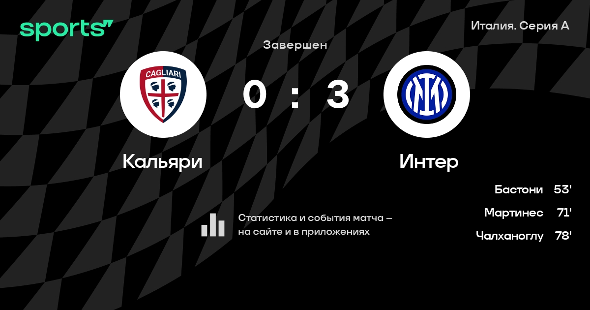Зоммер - Бастони, де Врей, Биссек - Димарко, Чалханоглу, Мхитарян, Барелла, Думфрис - Мартинес, М. ТюрамЗапасные: Жозеп Мартинес, Каллигарис, Мотта, Айду, Паласиос, Карлос Аугусто, Аслани, Фраттези, Зелиньски, Тареми, Бьюкенен, Корреа, Арнаутович