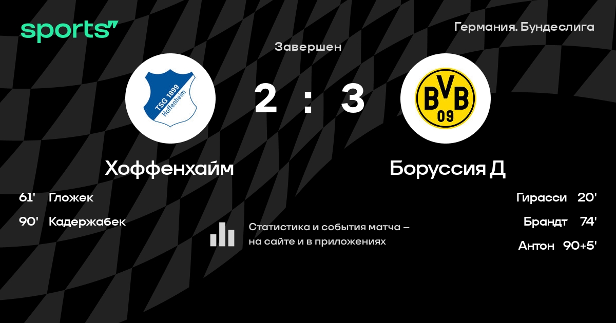 Хоффенхайм – Боруссия Д: Боруссия Д забивает в 10 последних матчах против этого соперника