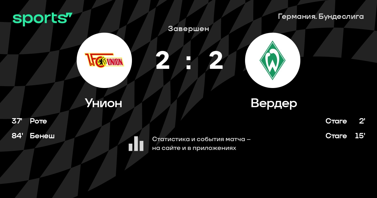 Унион Берлин – Вердер: Унион Берлин забивает в 9 из 11 последних матчей против этого соперника