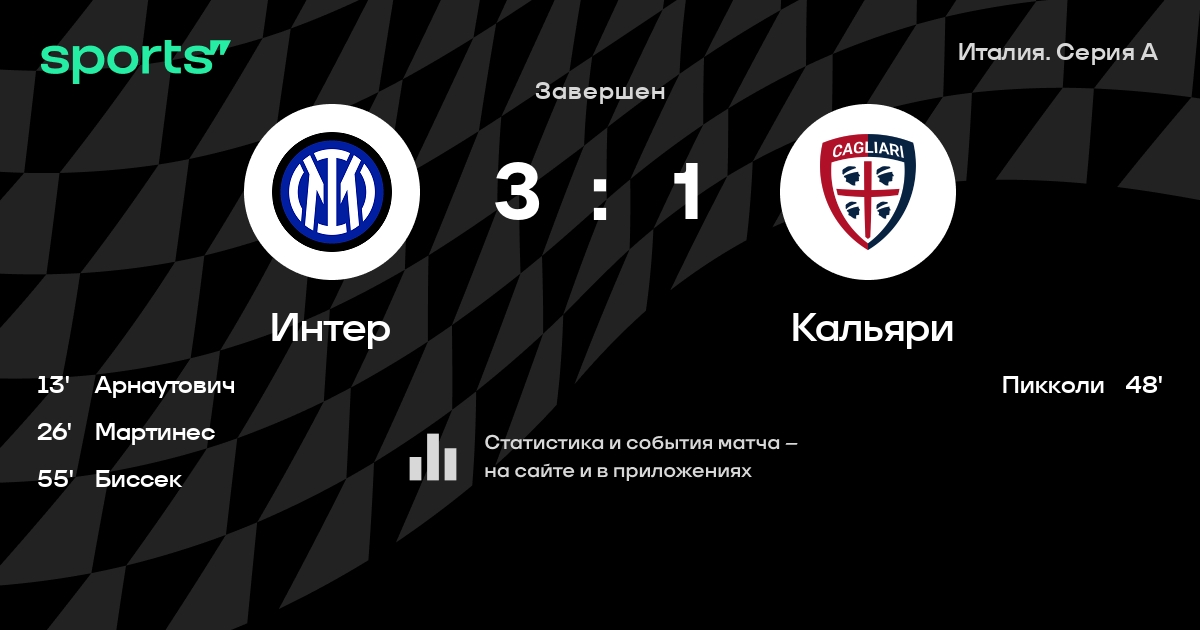 ПрогнозИнтер – Кальяри: прогноз на матч 12 апреля 2025 года