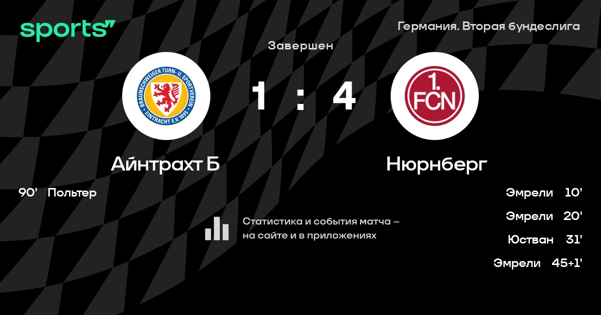Айнтрахт Б – Нюрнберг: Нюрнберг не проигрывает в 5 из 7 последних матчей против этого соперника