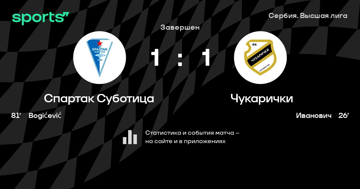 Трансляция Спартак Суботица - Чукарички