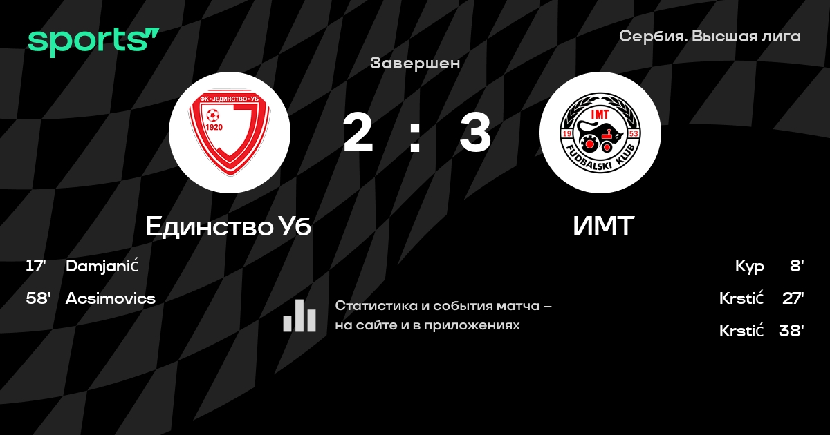 Результат прошлой игры в турнире «Высшая лига»: Текстилац Оджаци – Единство Уб 1:1. После 5 туров Единство Уб набирает 1 очков и занимает 16 место в турнире. Лучший бомбардир команды – D. Acsimovics: он забил 1 в 4 матчах. Единство Уб не может выиграть в 5 последних матчах в рамках турнира «Высшая лига». Единство Уб пропускает в 5 последних матчах в турнире «Высшая лига». В последних 5 играх Единство Уб забивает 2 голов. В последних 5 играх Единство Уб пропускает 12 голов.