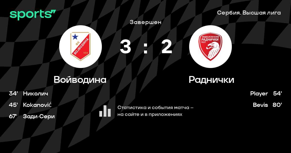 Результат прошлой игры в турнире «Высшая лига»: Раднички – Спартак Суботица 2:0. После 19 туров Раднички набирает 31 очков и занимает 5 место в турнире. Лучший бомбардир команды – Эвандро: он забил 7 в 22 матчах. В 9 последних матчах в турнире «Высшая лига» Раднички обязательно забивает. В последних 5 играх Раднички забивает 6 голов. В последних 5 играх Раднички пропускает 7 голов.