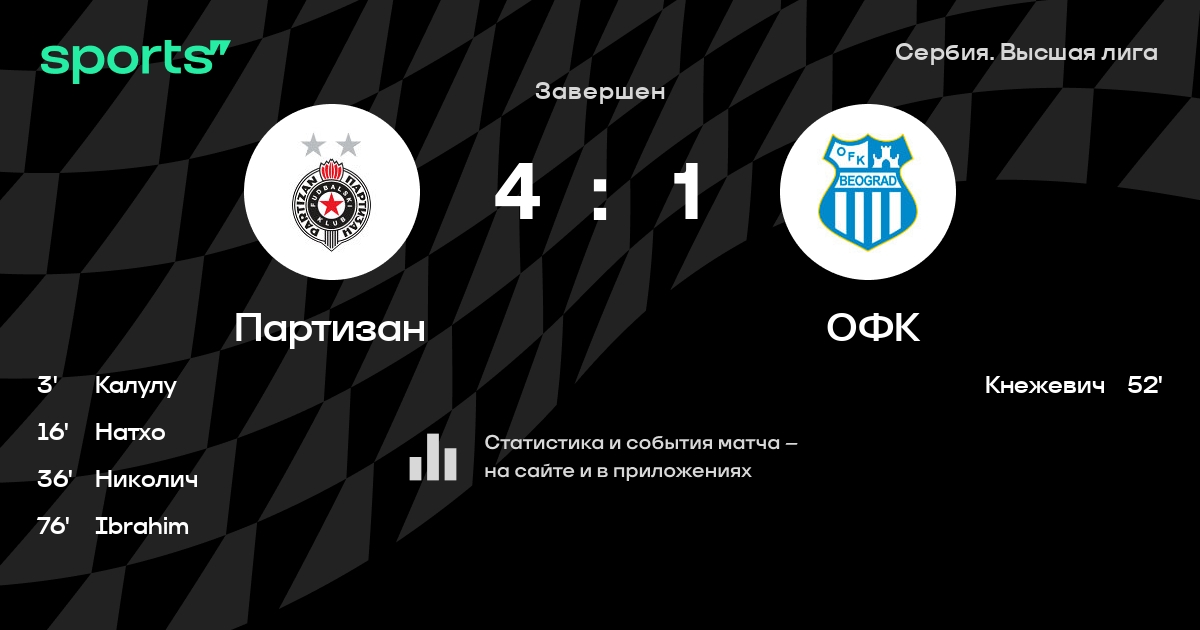 Партизан – ОФК: ОФК забивает в 6 последних матчах против этого соперника