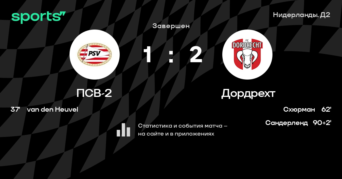 ПСВ-2 – Дордрехт: Дордрехт не проигрывает в 5 из 7 последних матчей против этого соперника в гостях
