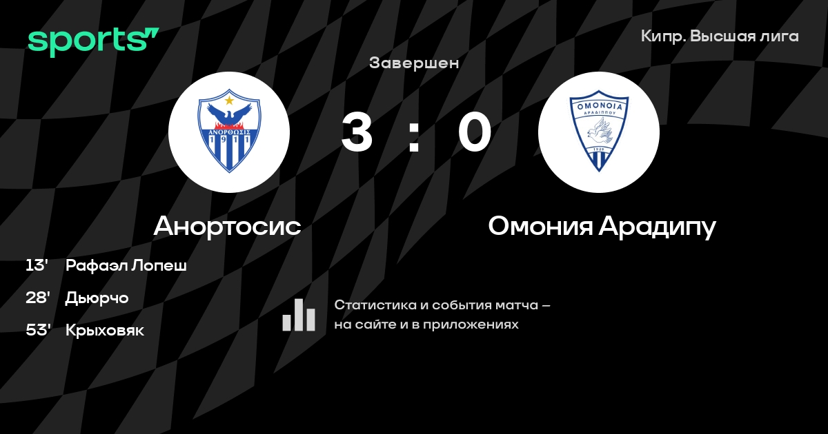 Результат прошлой игры в турнире «Лига 1»: Анортосис – Омония 29М 2:0. После 13 туров Анортосис набирает 18 очков и занимает 7 место в турнире. Лучший бомбардир команды – Рафаэл Лопеш: он забил 10 в 14 матчах. Анортосис не проигрывает в 3 последних матчах в рамках турнира «Лига 1». В 3 последних матчах в турнире «Лига 1» Анортосис обязательно забивает. В последних 5 играх Анортосис забивает 10 голов. В последних 5 играх Анортосис пропускает 8 голов.