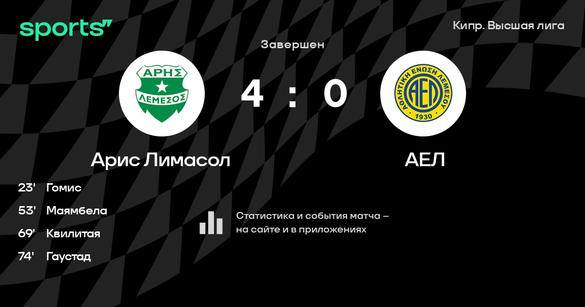 Арис Лимасол – АЕЛ: Арис Лимасол не пропускает в 4 последних матчах против этого соперника