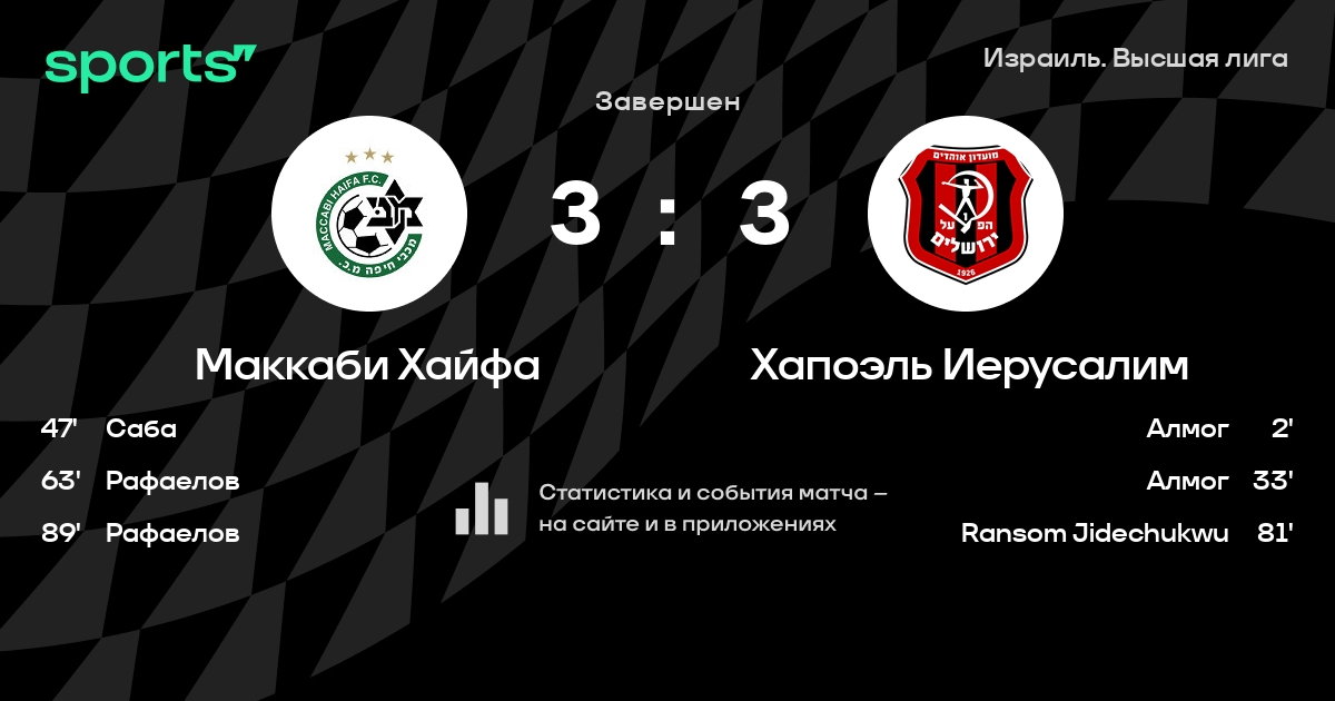 Маккаби Хайфа – Хапоэль Иерусалим: Маккаби Хайфа забивает в 5 из 7 последних матчей против этого соперника