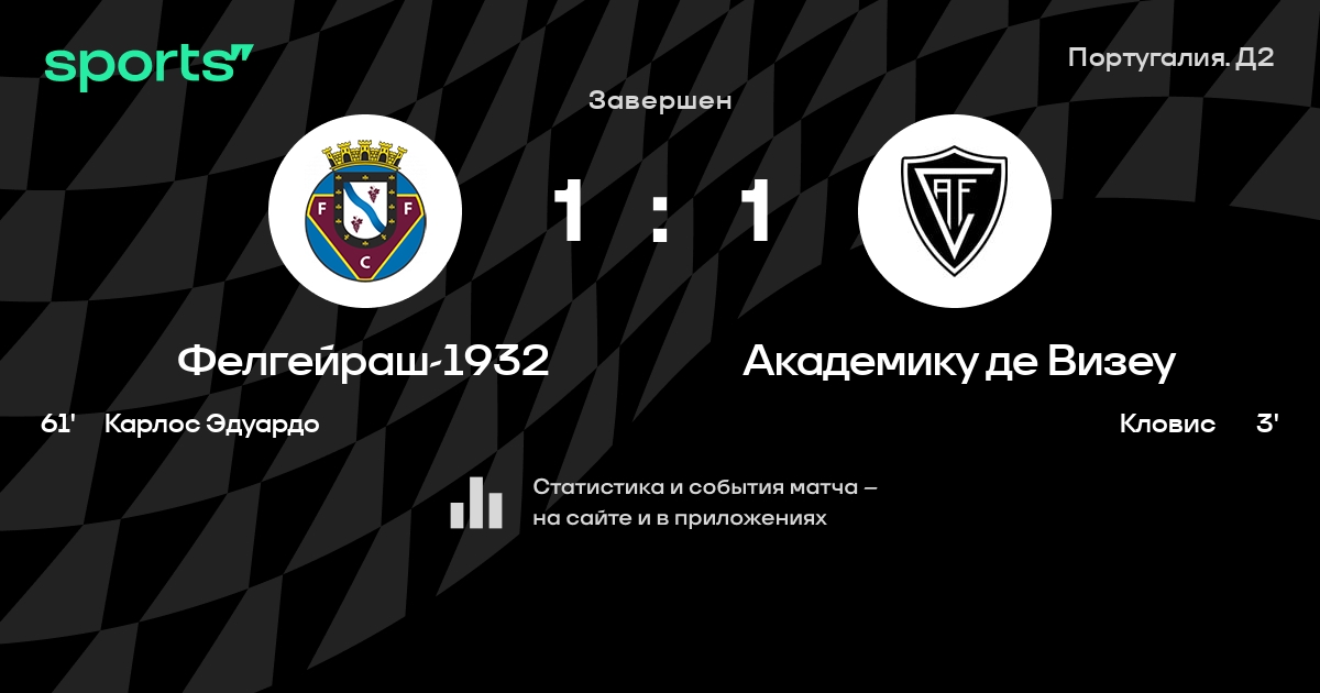 Результат прошлой игры в турнире «Сегунда»: Порту Б – Фелгейраш-1932 0:2. После 6 туров Фелгейраш-1932 набирает 7 очков и занимает 11 место в турнире. Лучший бомбардир команды – Leonardo Teixeira: он забил 2 в 6 матчах. В 3 последних матчах в турнире «Сегунда» Фелгейраш-1932 обязательно забивает. В последних 5 играх Фелгейраш-1932 забивает 4 голов. В последних 5 играх Фелгейраш-1932 пропускает 4 голов.